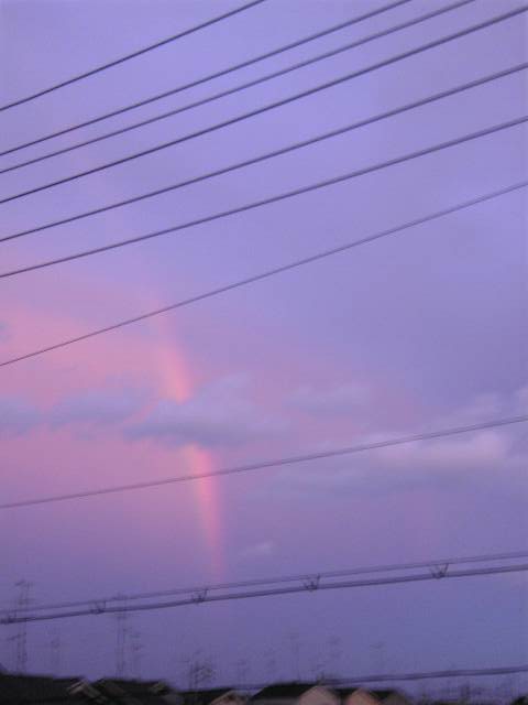 も数日前、京都で見た景色。夕暮れの中、ピンク色に透き通った虹はとても美しかった。